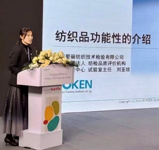 2023年3月28日から30日に開催された「Intertextile Shanghai Apparel Fabrics 2023」にて、上海ボーケンは機能性試験紹介についてセミナー講演を行いました。コロナの影響によりセミナーは約3年ぶりの開催となりました。