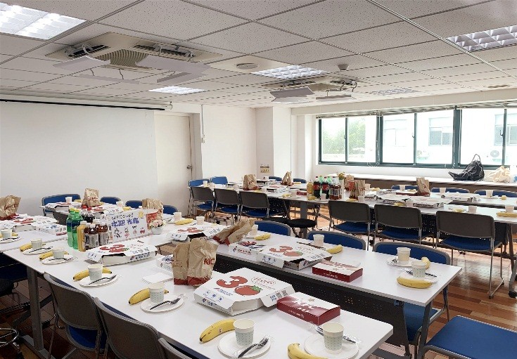 任何活動怎么能缺少美食的相伴哪!一個上午小朋友們一定都餓了。后方的老師們已經把美食準備好了,在輕快的音樂聲中大家共進午餐。