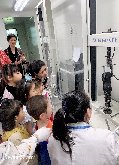 此次活動安排了參觀、體驗、趣味問答和歡樂午餐等項目。在參觀環節、小朋友們看到了徒手拉不開的鞋尖和鞋跟被測試儀器輕而易舉拉開、知道了如何區分羽毛和羽絨、看到了摩擦后被染色的白棉布等等。在體驗環節、小朋友們認真的觀察顯微鏡下棉、麻、毛纖維的不同之處。在趣味問答環節、幽默的日籍考官大關老師由于中文發音不太標準,讀完問題后、小朋友們直接說聽不懂、哈哈、好尷尬啊(大關老師、中文能力有待提高喔)。不過、我們的小朋友們還是很棒的、答對了考官提出的所有問題,并得到了一大盒彩筆以示鼓勵。